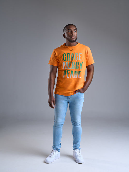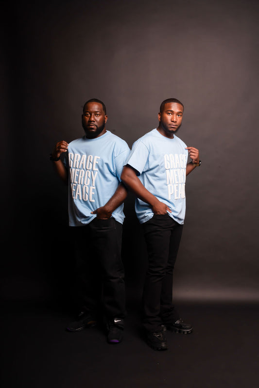 Puff Grace, Mercy, Peace, Tee - Light Blue